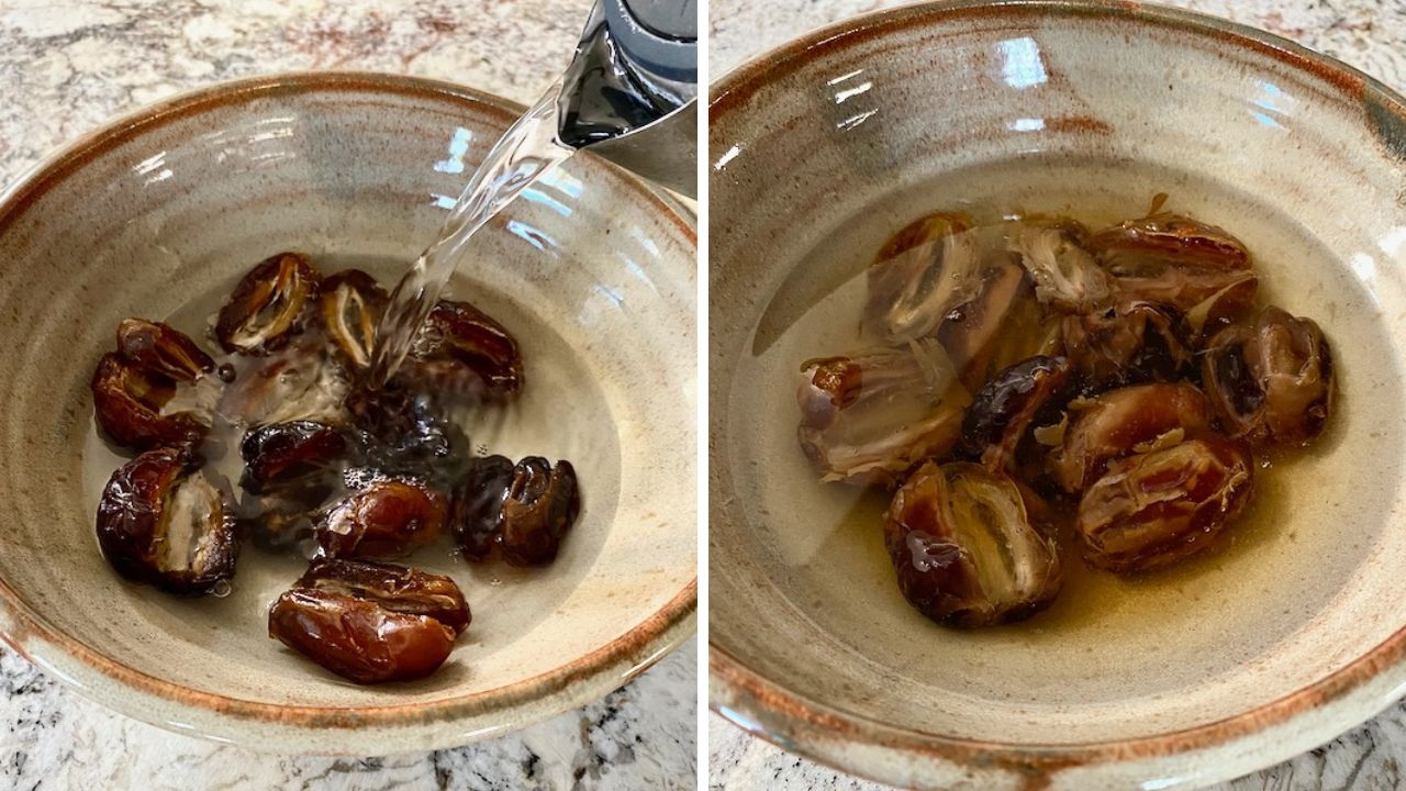 In a small bowl, combine 2 Tbsp of water with 2 Tbsp of date syrup and 1 tsp of vanilla extract.